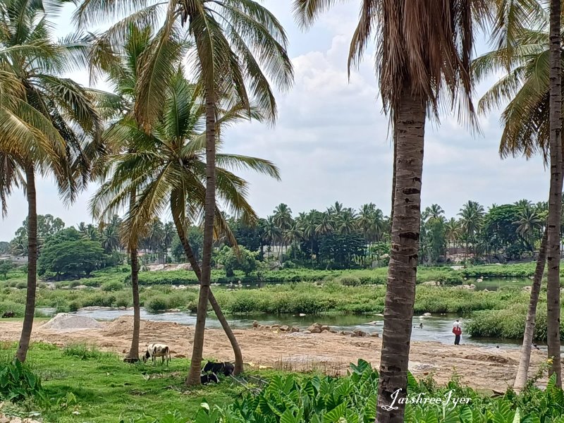 Actually Shri Nimishamba temple is at a higher elevation and is more towards the banks of River Cauvery. The place was less crowded, very neatly maintained and easily accessible. The water was flowing steadily and was crystal clear. Sangam is the confluence of three holy rivers, River Cauvery, River Lokapavani and River Hemavati. Actually Shri Nimishamba temple is at a higher elevation and is more towards the banks of River Cauvery.. The river is flowing at a lower level and steps cut on stone slabs have been placed to reach the river easily’